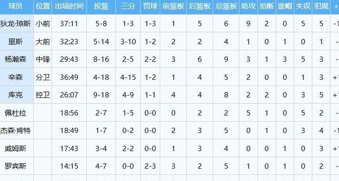 而团队的其他球员库克拿到了23分8篮板2抢断,里斯砍下15分4篮板,辛森拿到了14分5篮板。
